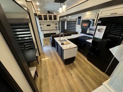Sleeps 4 Slides 3 Length 39 ft 5 in Ext Width 8 ft Ext Height 13 ft 5 in Hitch Weight 2375 lbs Dry Weight 11948 lbs Cargo Capacity 2747 lbs Fresh Water Capacity 49 gals Grey Water Capacity 76 gals Black Water Capacity 38 gals Available Beds Camper King Refrigerator Type Residential Size Number of Awnings 2 Water Heater Type Tankless AC BTU 30000 btu TV Info LR Residential TV Awning Info 12' and 16' Adjustable Power with LED Lighting Axle Count 2 Washer/Dryer Available Yes Shower Type Shower w/Seat Electrical Service 50 amp Similar Fifth Wheel Floorplans