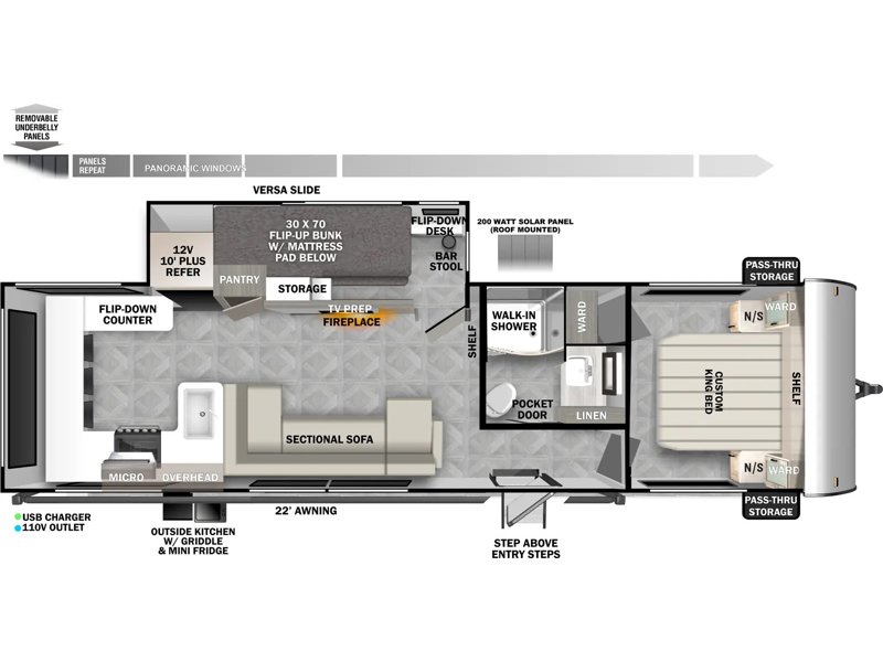 - Extended Power Package: Roof Mounted 200W Solar Panel, and 30 Amp Controller